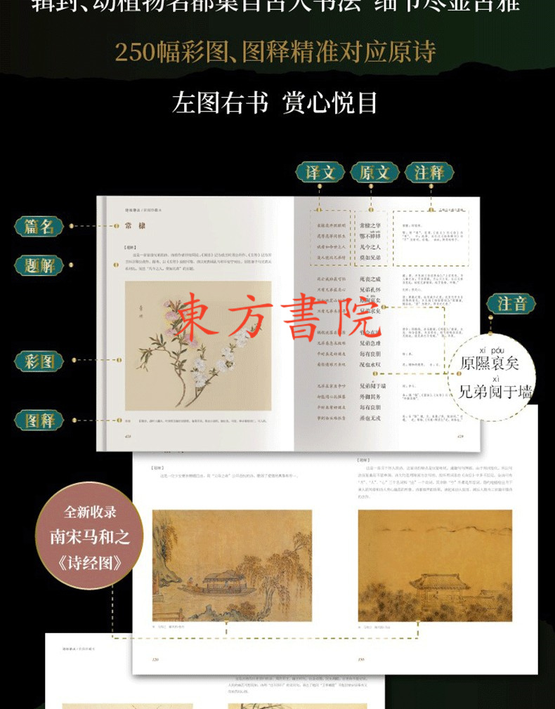 ★彩圖配有2萬餘字圖釋,全新收錄《詩經名物圖解》中未見的30餘幅彩圖,大飽眼福。