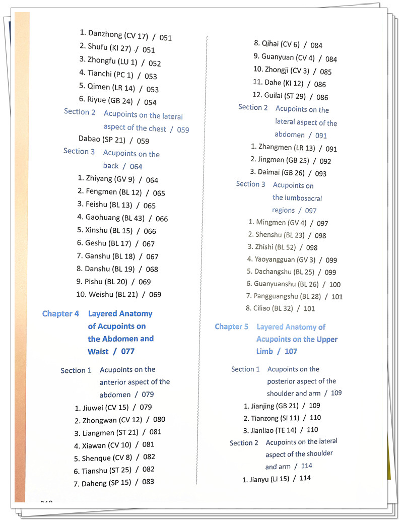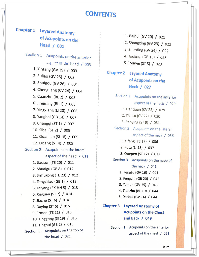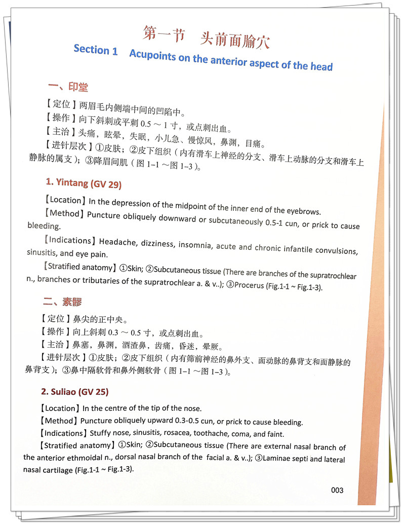 主要特色:①全書220幅插圖為實物標本照片,插圖中腧穴採用黑色字體顯示,解剖結構則以藍色字體顯示,這樣容易區分和查閱。 因精裝全彩印刷,圖譜將更加精美和實用。 ②腧穴內容包括定位、操作、主治、進針層次、針刺意外與預防,簡明扼要,重點突出,便於學習和掌握。 ③本書在編排上一改按經絡循行次序的傳統方法,採用按人體部位進行分部選穴,這樣有利於發現鄰近腧穴之間的結構差別與聯系,做到真正掌握腧穴的位置和解剖結構,為提高臨床針灸療效和避免針刺意外事故發生提供保障。 ④全書漢英對照,英文譯文專業、流暢,便於中醫更好地走向世界。 ⑤本書可供中醫院校師生、針灸醫生、針灸愛好者、國外針灸醫生、出國人員、留學生使用。
