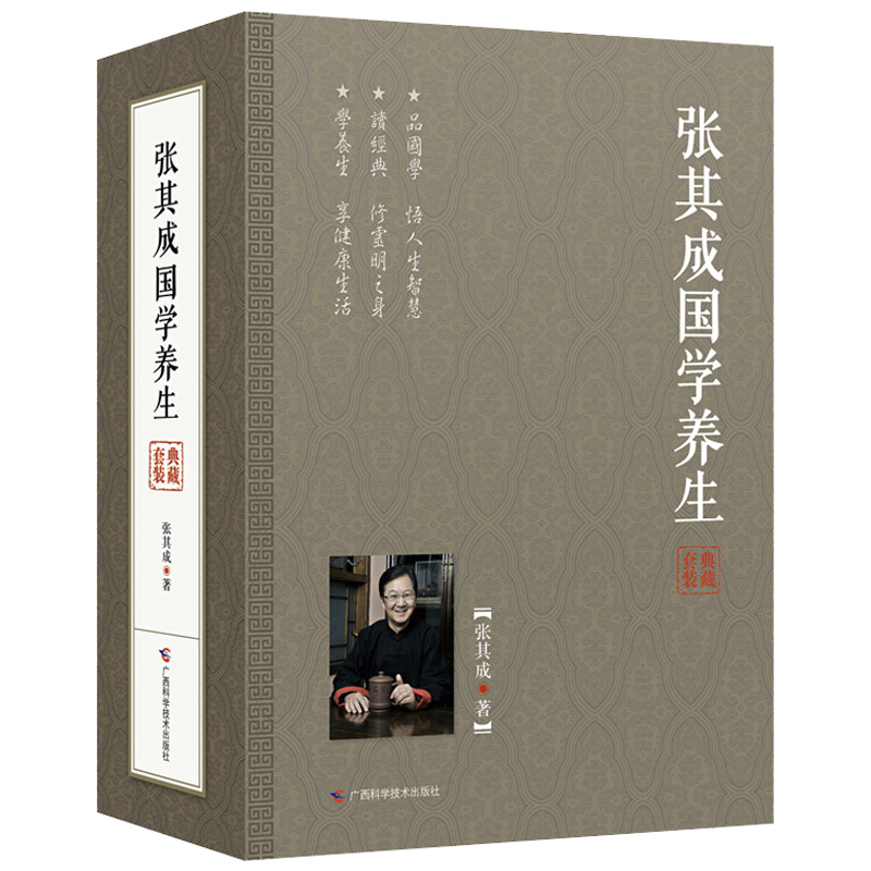 張其成教授養生作品——《張其成國學養生》包括《<黃帝內經>養生大道》《<易經>養生大道》《儒家養生大道》《佛家養生大道》《道家養生大道》等5本書,分別選用中國傳統國學文化中的兩本經典古籍《黃帝內經》《易經》和儒釋道三種思想流派作為切入點,將中國文化結構概括為「一源(《易經》)三流(儒釋道)四支(儒釋道醫)」,引經據典、深入淺出、舉一反三地將古時各家養生精髓與現代生活相結合,包括日常飲食、起居、運動、心理調適等,總結出*適合現代人養生的大智慧,既可修心又可養生。