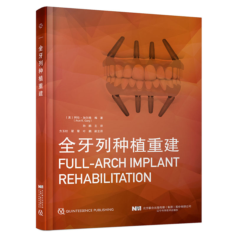 全牙列種植重建(FAIR)是即刻固定的、可負重的,具有美觀舒適性、功能完整性,且費用低、易維護及很好可靠的優點。 該方案併發症少,手術和臨時修復在一次就診中完成,通常只需要4顆或5顆種植體,包括遠中利用患者可用骨的傾斜種植體,一般無須進行骨移植。 《全牙列種植重建》為全牙列種植重建提供了一個簡明、非常不錯的指南,依此,臨床醫生將FAIR應用到他們的臨床實踐中是可行的。 逐個案例分析的管道新增了內容的獨特性。 以患者為中心的治療方法包括:手術導板和科技、消毒滅菌、藥物使用、骨生理學應用及併發症處理等。 書中的病例不僅有患者頜面部照片,還有大量生動的、數位化渲染的效果圖,使治療流程的描述更加清晰; 另外,還提供了可獲取大量資訊的表格和圖片,闡述了治療程式的基本要素。