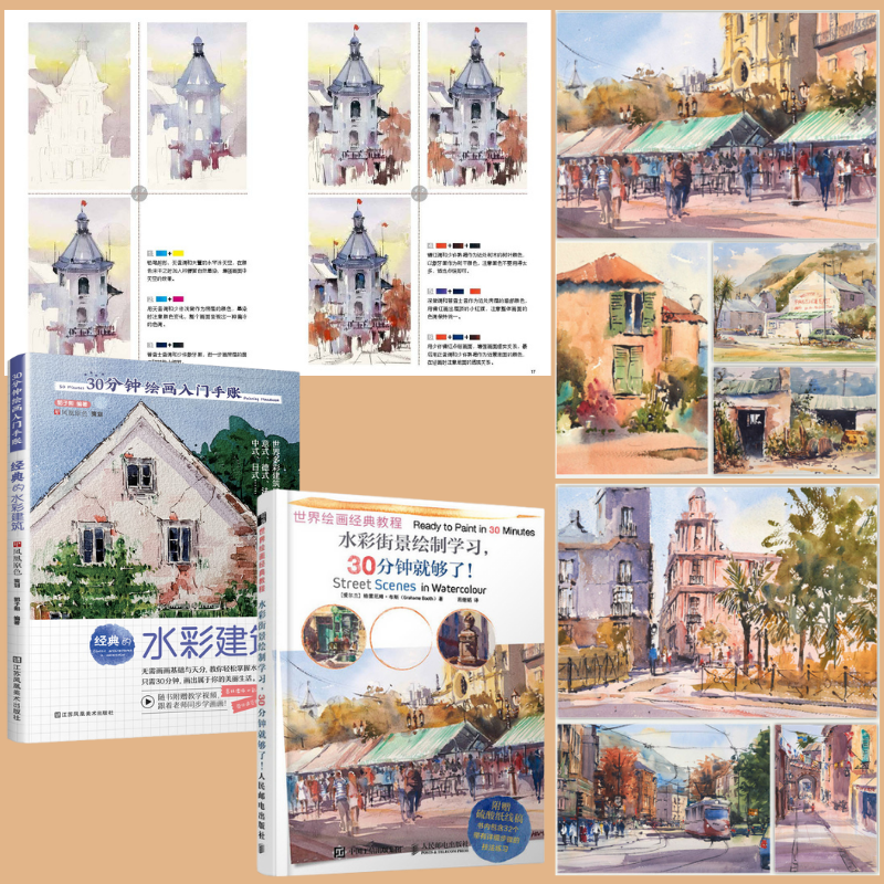 本書是入門級水彩建築的技法教程,一共分為三部分,首先是本書從水彩工具的準備與運用,到構圖與調色技法,由淺入深可以一站式掌握。 第二部分是50個代表作品示範,包含意式、德式、法式、中式、日式等經典建築的詳細畫法步驟。* 後展示作者的經典水彩作品,可供欣賞與臨摹。 本書的課程重點是體現水彩畫的“形狀色塊”,通過簡潔概括的形狀和色彩搭配來完成水彩畫,而無需刻畫細節。 本書步驟詳盡,配色直觀而明朗,用水彩特性來表現建築本身的光色變化與精神內涵。 能讓沒有繪畫基礎的小白,可以在30分鐘內,輕鬆畫出充滿高級感的澳派風情水彩,領略各種唯美的建築風光。