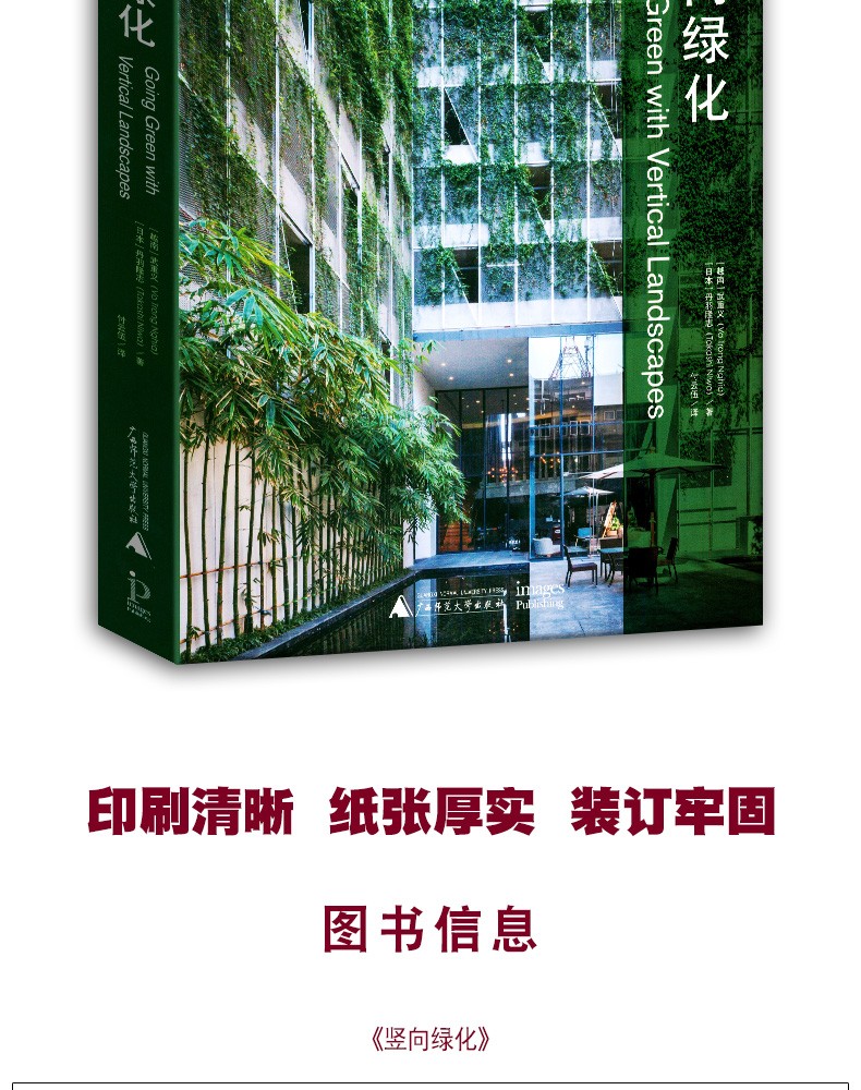 在城市環境建設面臨挑戰的時刻,綠牆、建築牆面綠化與屋頂綠化的出現開闢了一種讓人們在都市中能够感受自然的新途徑。 豎向綠化對永續景觀的維護和發展做出了重要的貢獻,本書主要分為科技指南和案例分析兩大部分,通過40多個國際知名的景觀案例,說明了豎向綠化的優勢、現場規劃、施工與維護等。 本文闡明了豎向綠化的概念以及能够產生的效益,針對未來城市綠化的發展趨勢,提出了把“水泥都市”變為“森林都市”的構想。