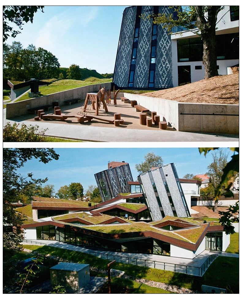 在區域冷卻系統周圍,人們栽植了一片地被植物,作為周邊公園的延伸區域和綠色外立面的補充。 美觀的綠色植被帶來了眾多環境效益,諸如降低二氧化碳的濃度、减少灰塵、降低雜訊、降低區域內微氣候的溫度以及新增動植物群落的生物多樣性。 該區域與周邊公園有機地結合在一起,為用戶創造了一個都市中的綠洲,使他們在精神上得到緩解和放鬆。
